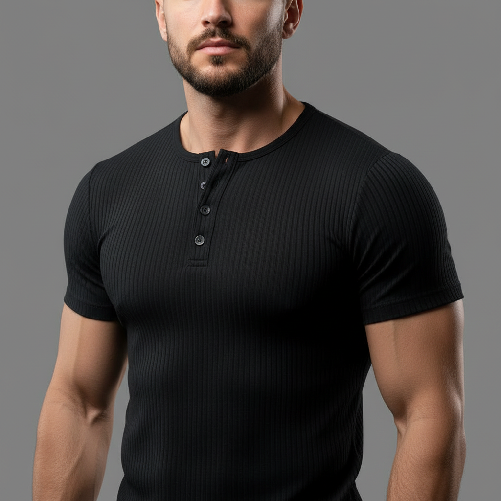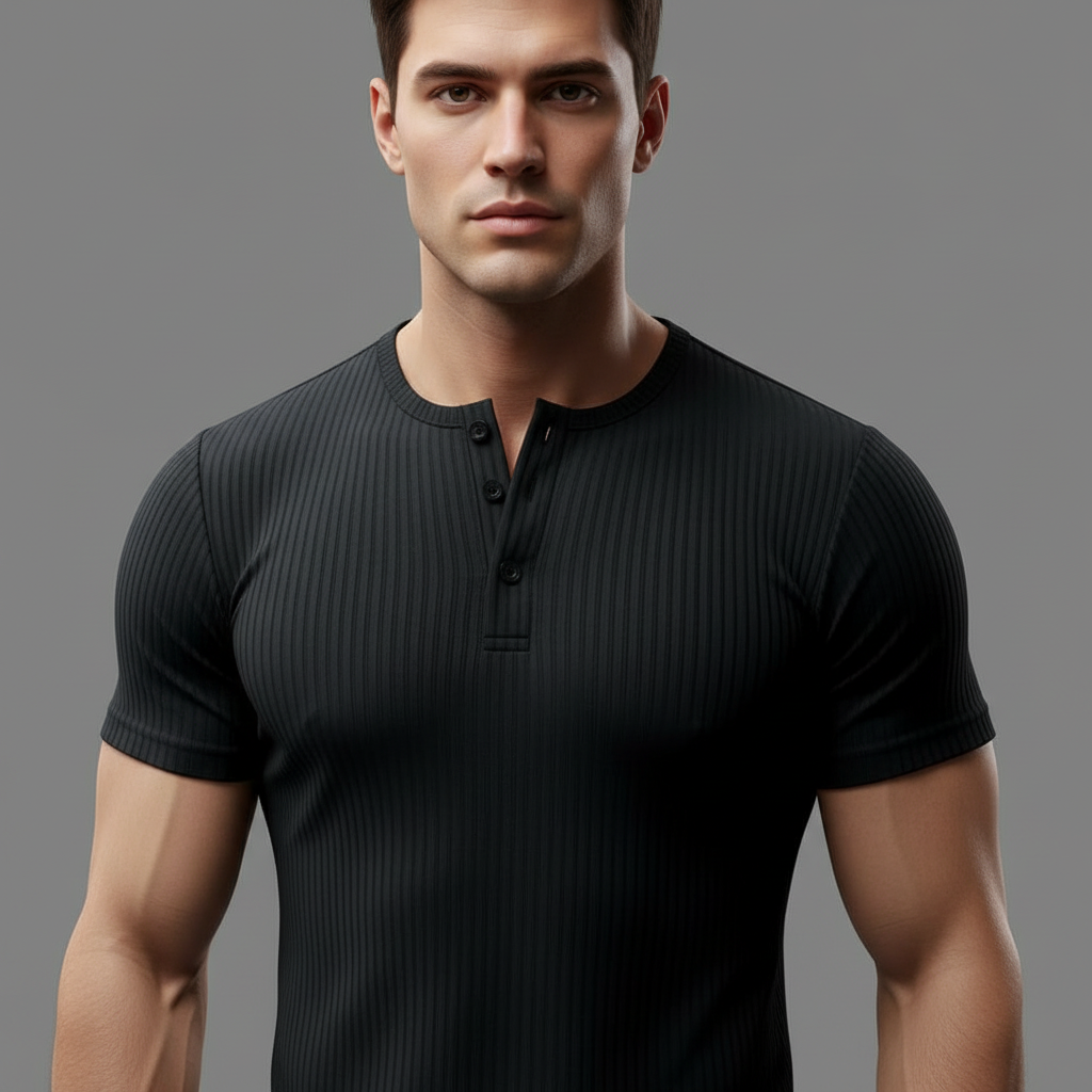 Entdecken Sie unser Muscle Fit Henley T-Shirt, das speziell für den modernen Mann entworfen wurde. Dieses T-Shirt betont Ihre Muskulatur und bietet gleichzeitig Komfort und Strapazierfähigkeit. Ideal für lässige Anlässe oder intensive Workouts, bringt es Stil in Ihre Garderobe.